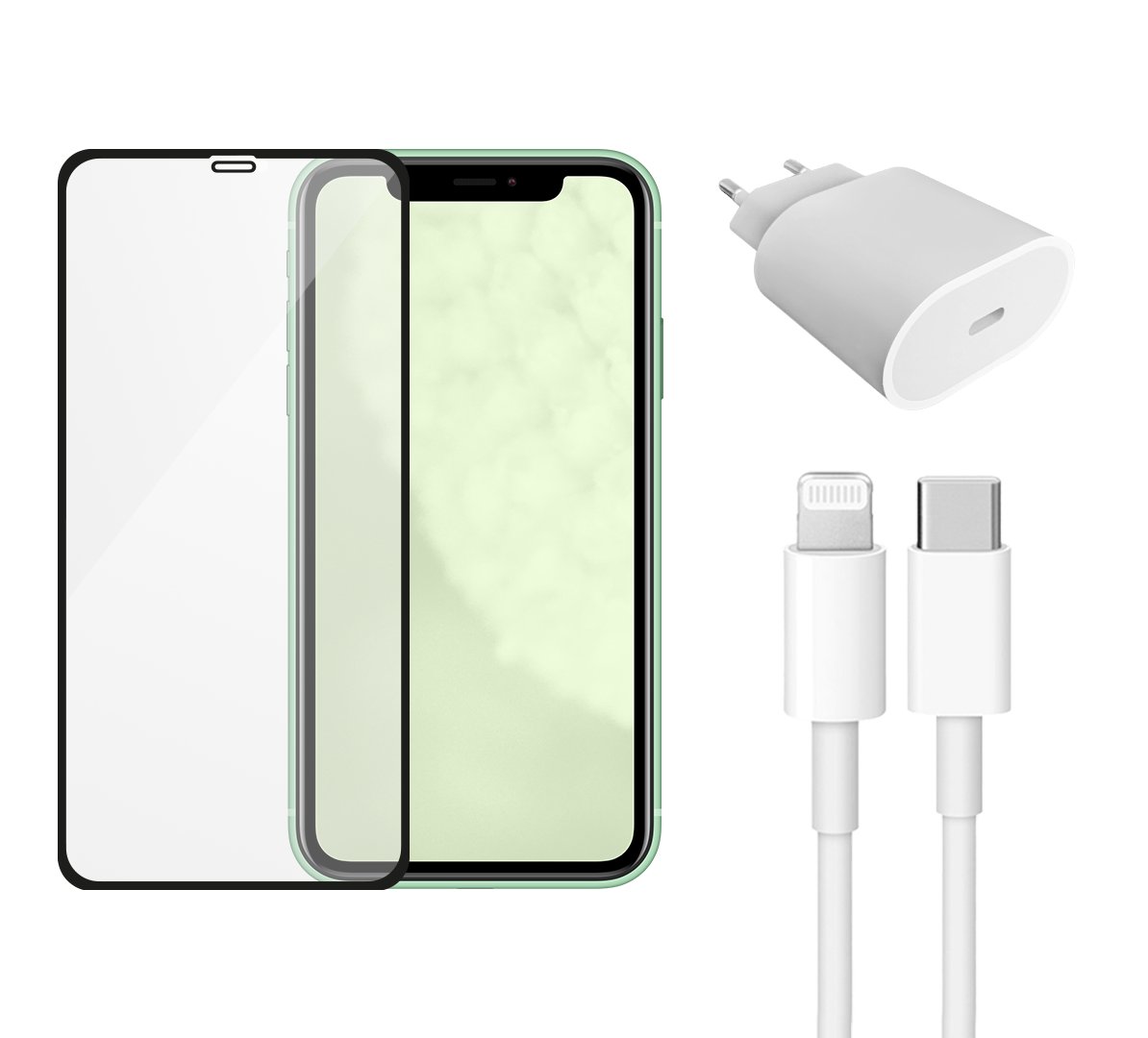 • Fast Charger (20W), Cable (Lightning) & Screen Protector | iPhone 11 1